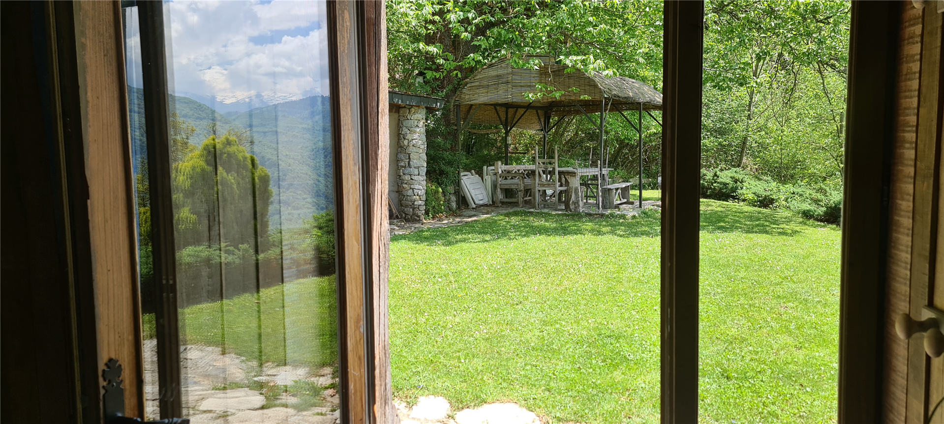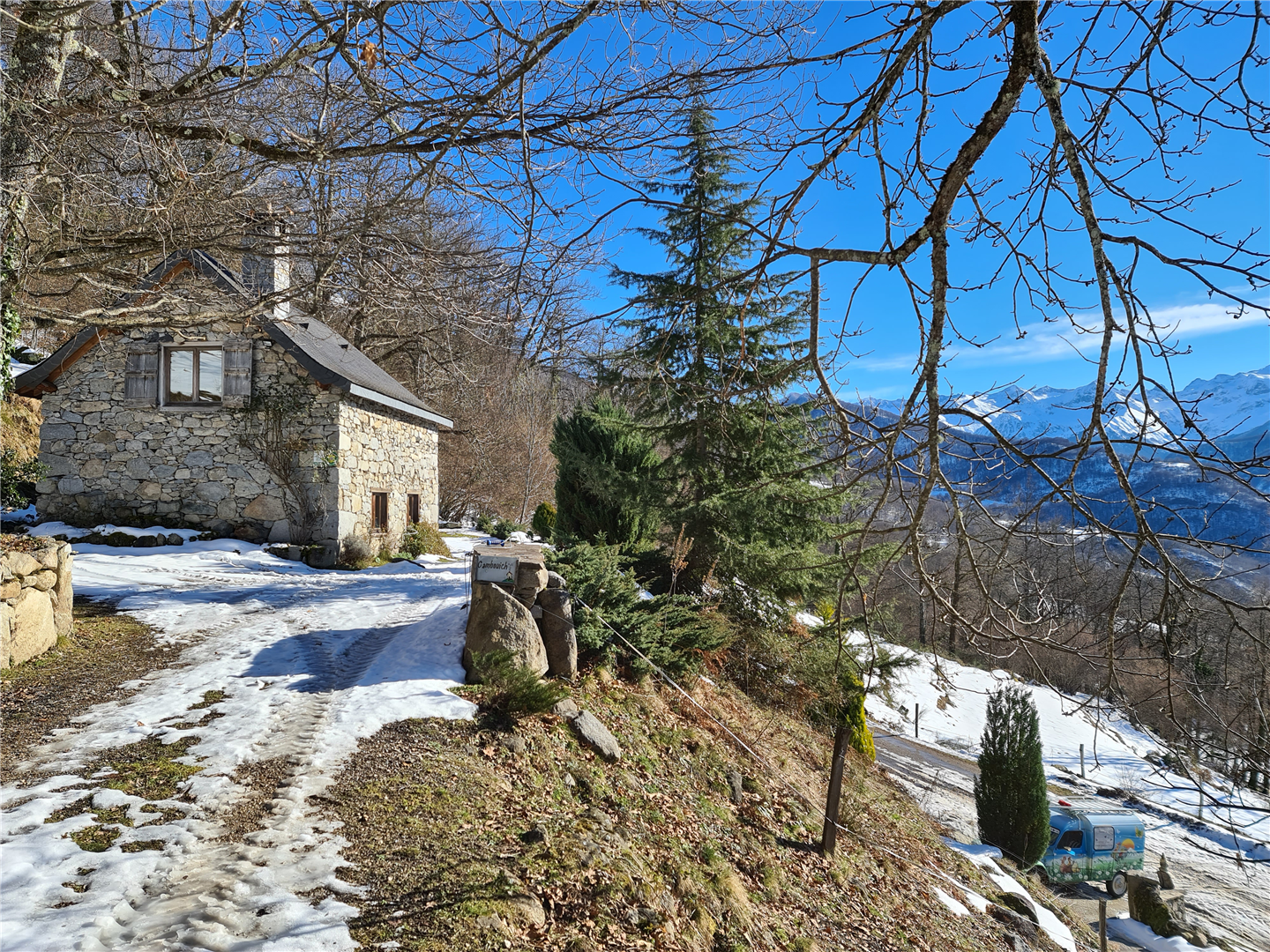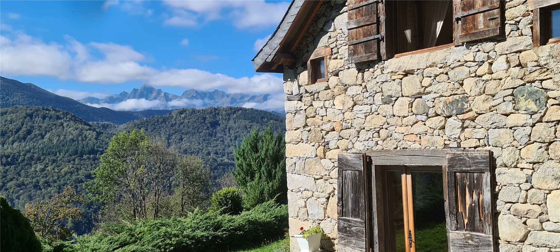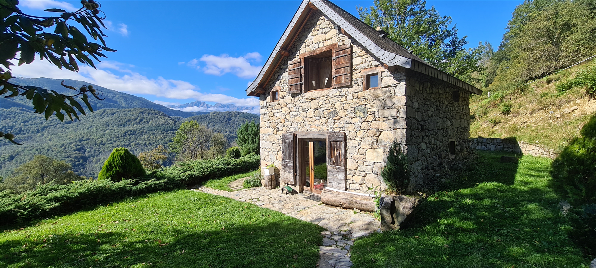 La vue est spectaculaire, aussi bien vers la vallée du Garbet en contrebas que vers le Mont Valier et les hauts sommets de la Haute Ariège. Devant la maison se trouve un grand abri de jardin avec barbecue, parfait pour profiter du panorama. À l’arrière, une source naturelle coule toute l’année dans un bassin de pierre pour se rafraîchir après une randonnée. Située au cœur du Parc Naturel Régional des Pyrénées Ariégeoises, la maison est entourée d’une nature sauvage, pure et préservée. Ici, l’air est limpide et l’eau que nous buvons provient directement de notre montagne.